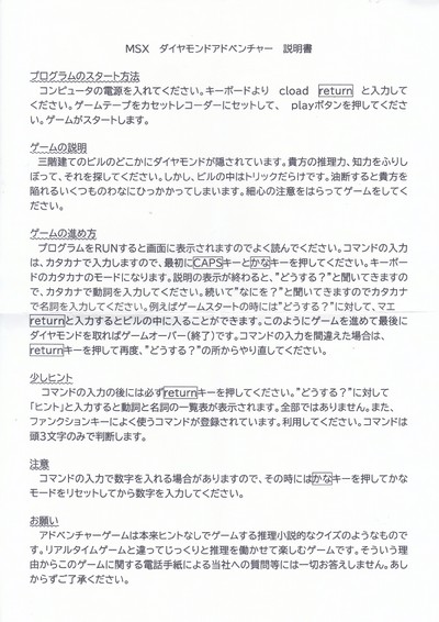 ダイヤモンドアドベンチャー(状態:説明書欠品/パッケージ状態難)