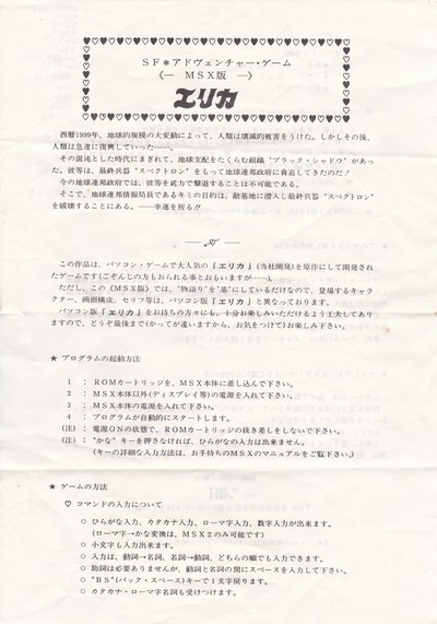 [説明書のみ]SFアダルトアドベンチャー エリカ